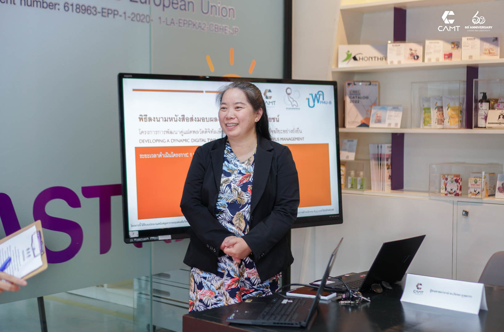 DSC02224.jpg256.72 KBAssociate Professor Dr. Thongchai Fongsamutr, Dean of the Faculty of Engineering, Assistant Professor Dr. Thawatchai Tanchaisawat, Associate Vice Dean, Assistant Professor Dr. Chuchawal Chai Chana, Associate Vice Dean, and Associate Professor Dr. Damrongsak Rinshumboo, head of the Frontier Research in Urban Intelligence group, Assistant Professor Dr. Nathee Suriyannont, Assistant Professor Dr. Chinpat Buachart, and Ms. Thidarat Laddawan Ayutthaya, a researcher under the project, participated in the signing ceremony for the delivery and acceptance of research work for utilization in the project between the College of Arts, Media, and Technology and the Faculty of Engineering.DSC02186.jpg230.14 KBThe project leader represented the deliverer of the research work from the college, and Associate Professor Dr. Damrongsak Rinshumboo, head of the Frontier Research in Urban Intelligence group from the Faculty of Engineering, represented the recipient. The ceremony was honored by the participation of executives from both institutions, who also signed as witnesses for both parties.DSC02087.jpg236.12 KBThe project 'Developing a Dynamic Digital Twin for Sustainable Smart Campus Management (DDT)', part of the 16th Program for the Reform of Higher Education, Science, Research, and Innovation Systems, supported by the research management unit for human capacity development and the research and innovation development fund for higher education institutions (BPK), received a budget of over 6 million baht for a period of 3 years from November 1, 2021, to October 31, 2024. The project involves faculty and researchers from the College of Arts, Media, and Technology collaborating with faculty and researchers from the Department of Civil Engineering, Faculty of Engineering, Chiang Mai University.