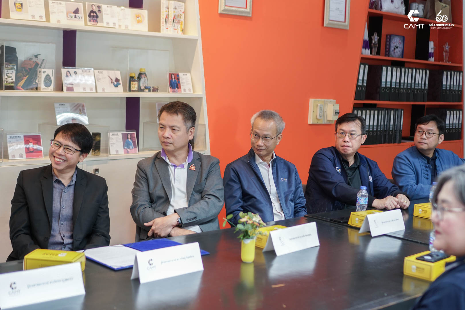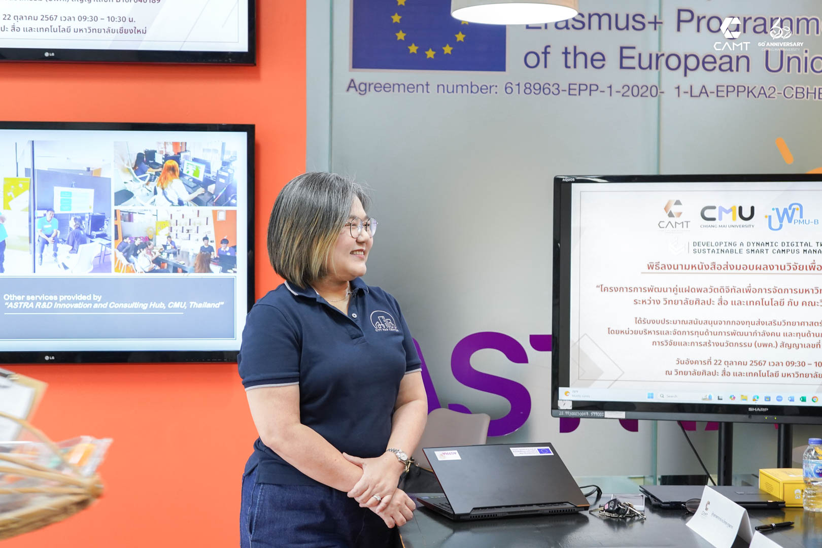 This Signing ceremony held on October 22, 2023, from 09:30 – 10:30 AM at the KIND Center by CAMT, 3rd floor of the College of Arts, Media, and Technology, Chiang Mai University. Assistant Professor Dr. Worawit Janchai, Dean of the College of Arts, Media, and Technology, along with Assistant Professor Dr. Pattaraporn Kuwutyakorn, Project Leader of 'Developing a Dynamic Digital Twin for Sustainable Smart Campus Management', and Assistant Professor Dr. Manisawas Jintapitak, a researcher in the project, welcomed the executive team, faculty, and research group from the Faculty of Engineering.
